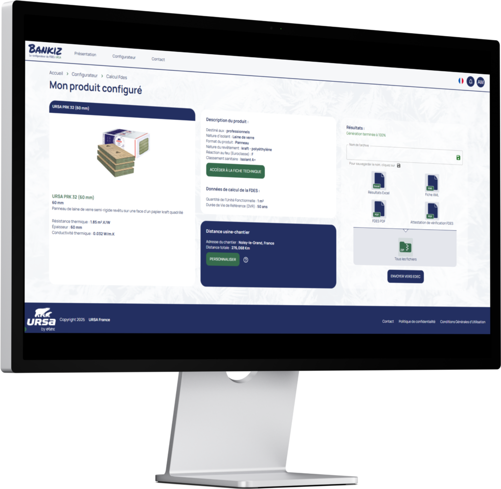 Contrairement aux bases de données qui interviennent une fois le choix d’isolant arrêté, BANKIZ accompagne la décision en amont. L’outil guide les professionnels vers la solution URSA la plus adaptée à leur projet, tout en rendant accessibles les données environnementales correspondantes.
