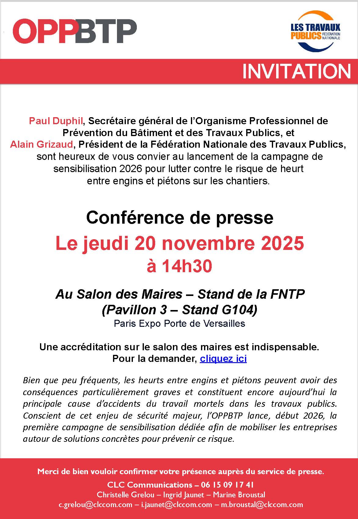 Conférence de presse Campagne Risque Heurt Engin Piéton